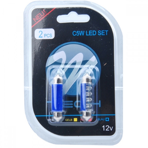 LB024B Λάμπες Σέτ Πλαφονιέρας C5W/C10W 12V 0.53W SV8.5 41mm LED 8xFlux 3mm ΜΠΛΕ BLISTER 2τμχ.